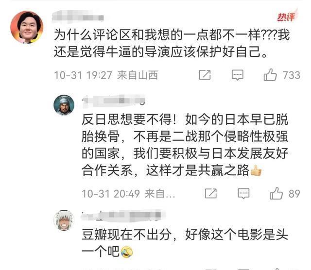 三、网友:戴个防弹头盔吧。 在《731》没有公映之前,只要有短视频宣发,下面的回复基本全是吹捧的,说这是中国人必看的电影,一定要让所有人都知道日本人在中国犯下的暴行。 而《731》公映之后,网友的回复亮了。 啡哥看了一下评论,基本上可以分为三类: 第一类为比较理性的。 如“为什么评论区和我想的一点都不一样?”“不管拍的怎么样,最起码他记录和演绎了历史”等。